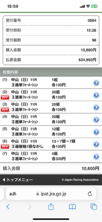 普段は1万円分も馬券を買うことはないんですが、トウシンマカオが前走のセントウルSを勝った時に、「スプリンターズSに出走してきたら絶対に本命にする!3着までに絶対に入る!」って強く思ったので奮発しました!