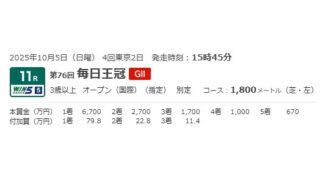 一方、6番人気以下の馬が3勝を挙げ、3連単100万馬券も二度出ているので、下位人気馬の激走もありえる重賞。